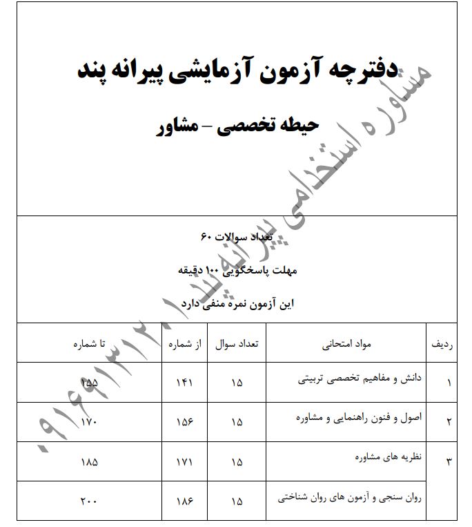 برای گرفتن تمام منابع استخدامی و آخرین نکات آزمون های استخدامی به شماره ۰۹۱۶۹۱۳۱۲۰۱ در پیام رسان های ایتا ، تلگرام ، واتساپ، روبیکا پیام دهید و یا در صورت نیاز تماس حاصل فرمایید