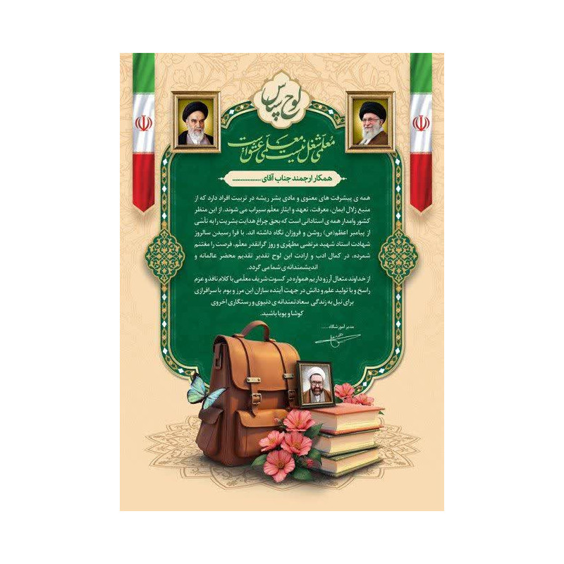 این لوح با طراحی زیبا و کیفیت چاپ بالا، بهترین هدیه برای قدردانی از زحمات معلمان دلسوز است.