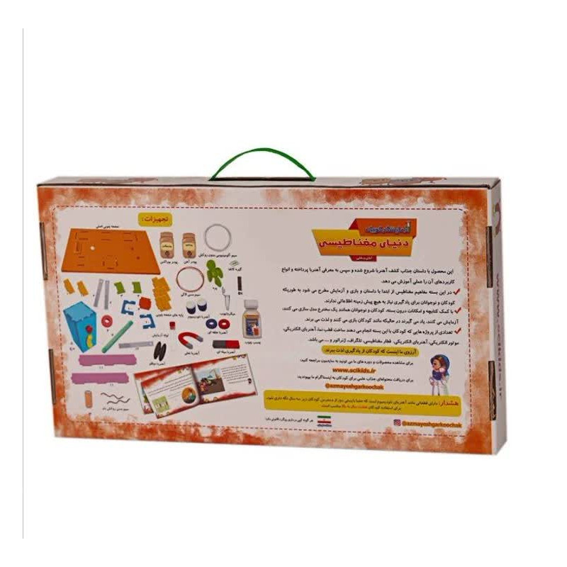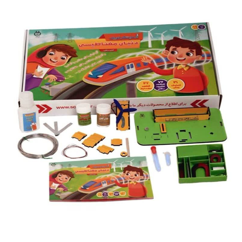 یک محصول آموزشی فوق العاده برای کودکان و نوجوانان که با داستان جذاب کشف آهنربا شروع می شود و سپس به معرفی آهنربا پرداخته و انواع کاربردهای آن را عملی آموزش می دهد. این محصول فوق العاده دارای 46 قطعه مورد نیاز، دفترچه تمام رنگی 72 صفحه ای با 31 آزمایش جذاب است. در این بسته مفاهیم مغناطیس از ابتدا با داستان و بازی و آزمایش مطرح می شود به طوریکه کودکان و نوجوانان برای یادگیری نیاز به هیچ پیش زمینه اطلاعاتی ندارند. با کمک دفترچه و امکانات درون بسته، کودکان و نوجوانان همانند یک مخترع مدل سازی می کنند، آزمایش می کنند، یاد می گیرند در حالیکه مانند کودکان بازی می کنند و لذت می برند. تعدای از آزمایش هایی که کودکان با این بسته انجام می دهند ساخت قطب نما، آهنربای الکتریکی، موتور الکتریکی، قطار مغناطیسی، تلگراف، ژنراتور و… می باشد1