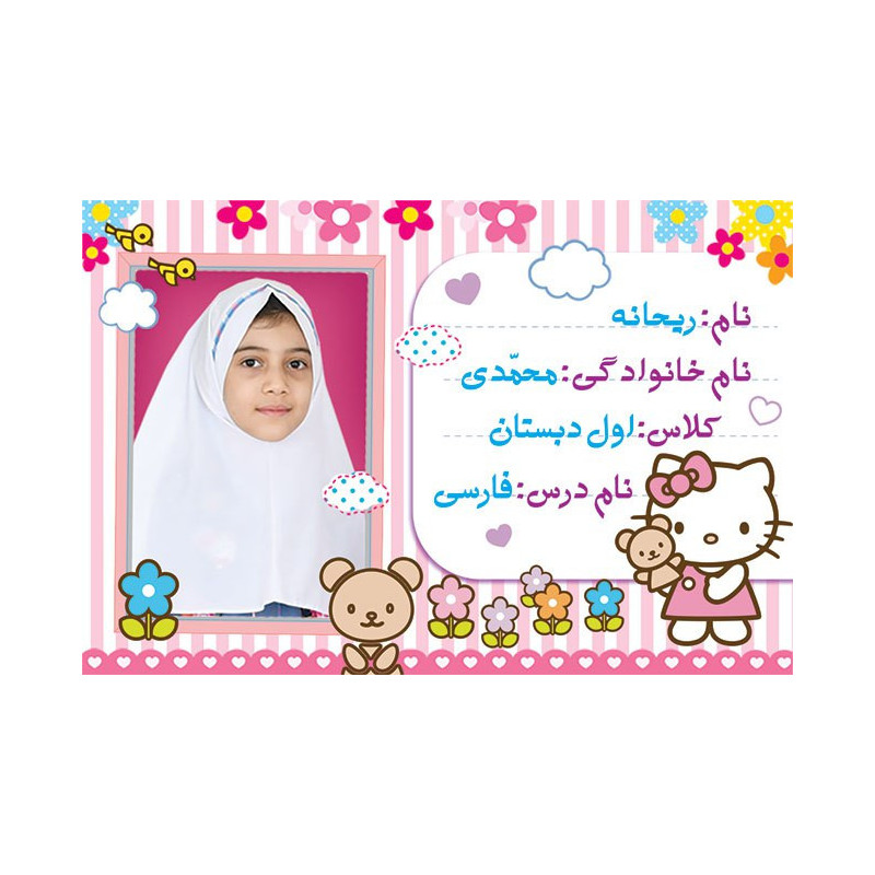 ببرچسب‌های مشخصات دانش‌آموزی روی کاغذ چسب‌دار باکیفیت چاپ می‌شوند و شامل اطلاعاتی مانند نام، نام خانوادگی، پایه تحصیلی، نام مدرسه و عکس دانش‌آموز هستند.