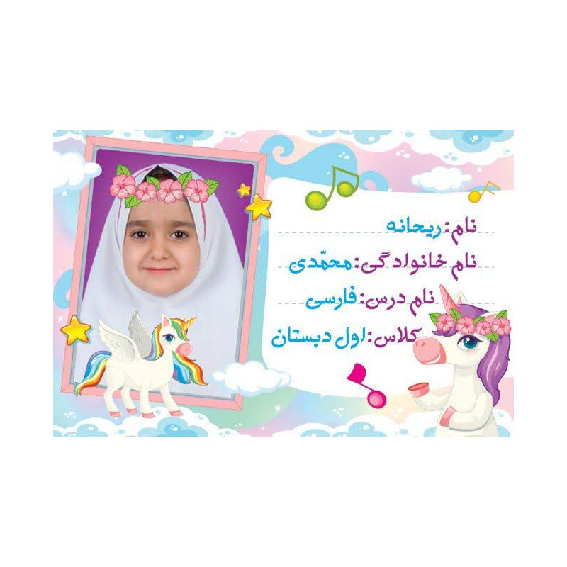 ببرچسب‌های مشخصات دانش‌آموزی روی کاغذ چسب‌دار باکیفیت چاپ می‌شوند و شامل اطلاعاتی مانند نام، نام خانوادگی، پایه تحصیلی، نام مدرسه و عکس دانش‌آموز هستند.