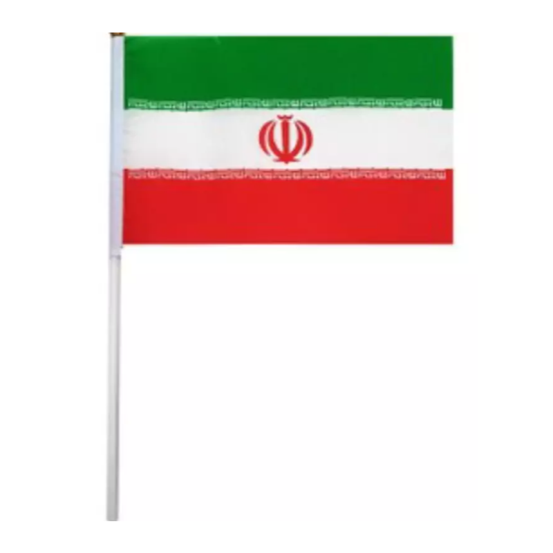 پرچم ایران جنس پارچه ای عالی سایز ۳۰×۴۰با میله پلاستیکی سفید اندازه میله ۵۰سانتیمتر